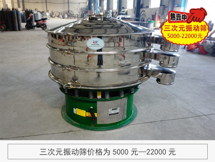 大汉机械作为一家三次元振动筛直销型生产厂家,没有中间商赚取差价实行产销一体化,产品从研发到生产到销售拒绝所有环节上的浪费,价格均低于其他厂家,让客户能购买到价格便宜的设备。三次元振动筛价格为5000元—22000元。